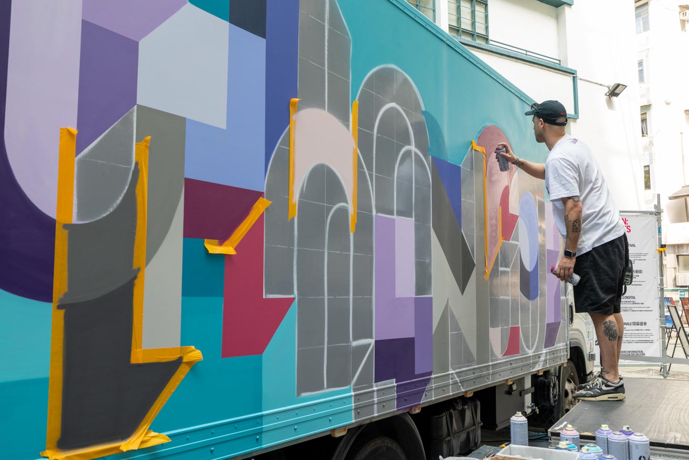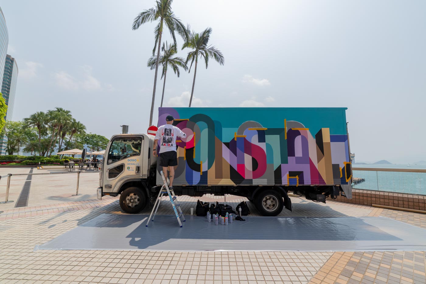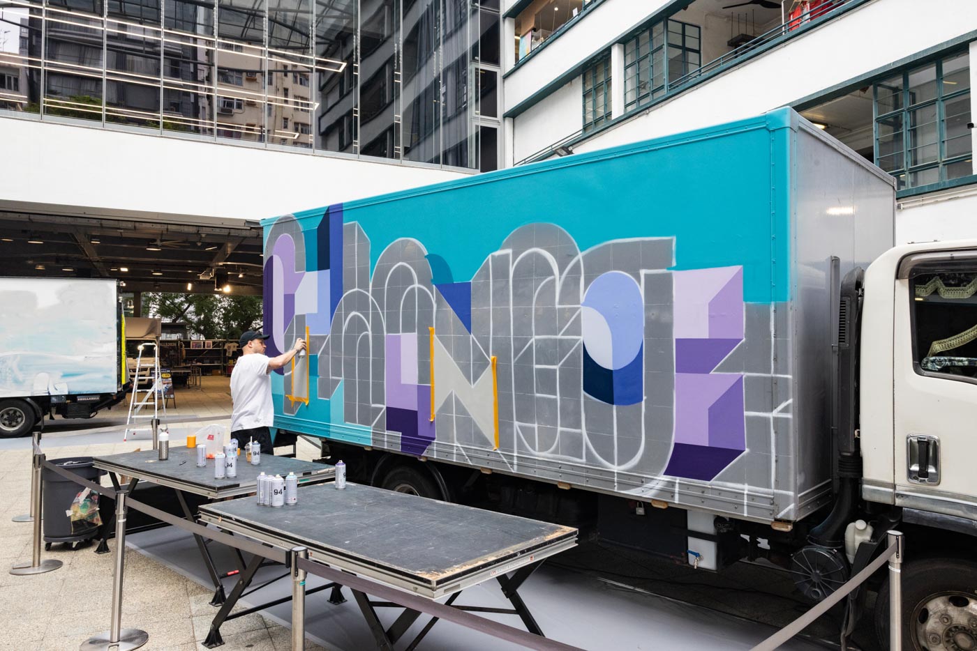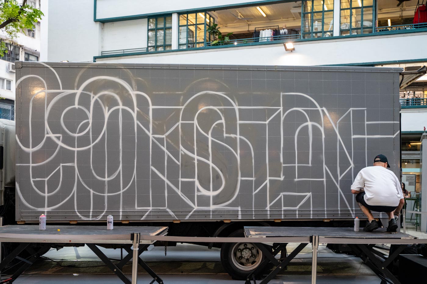 This artwork features Saïd’s exploration on the duality of change and constancy through his work. Inspired by Hong Kong’s rapid transformation and gentrification, he seeks to express how these opposing ideas coexist. Using a truck as his canvas, he paints with one side displaying “change” and the other “constant,” reflecting the paradoxical nature of progress. By juxtaposing these concepts, Kinos highlights how change and stability are intertwined, forming a continuous cycle. His work invites viewers to reflect on the ever-evolving cityscape and the universal experience of navigating constant transformation.