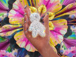 嚟自法國嘅藝術家Theo Haggai擅長喺城市入面嘅街頭巷尾,用佢獨特嘅視覺風格去捕捉世界各地各種破碎而和諧、人與人之間嘅微妙連繫。佢標誌性嘅壁畫同版畫入面,經常會見到一啲重複出現嘅人像,佢嘅雙手環抱住曼陀羅,喺轉瞬即逝嘅生命當中,創造出一種強大而團結嘅象徵。