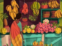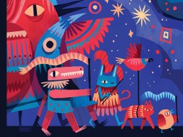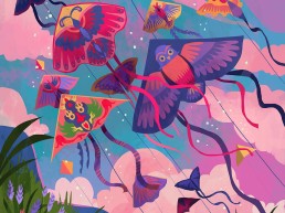 Mooncasket is an illustrator who draws inspiration from her everyday surroundings, her love for kooky monsters, and her obsession with retro cartoons. She started her career by creating zines and stickers using do-it-yourself platforms. Her retro-cute aesthetic is inspired by 2000s skate culture, has a playful attitude and character designs.