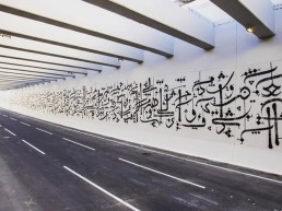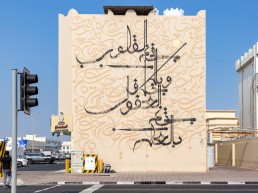 Fatima Alsharshani, founder of Qaif Calligraphy, is known for her “calligraffiti”, aiming to bring  a sense of calm and meditation to the viewers and highlighting the beauty of Arabic letters through the use of a variation of scripts.